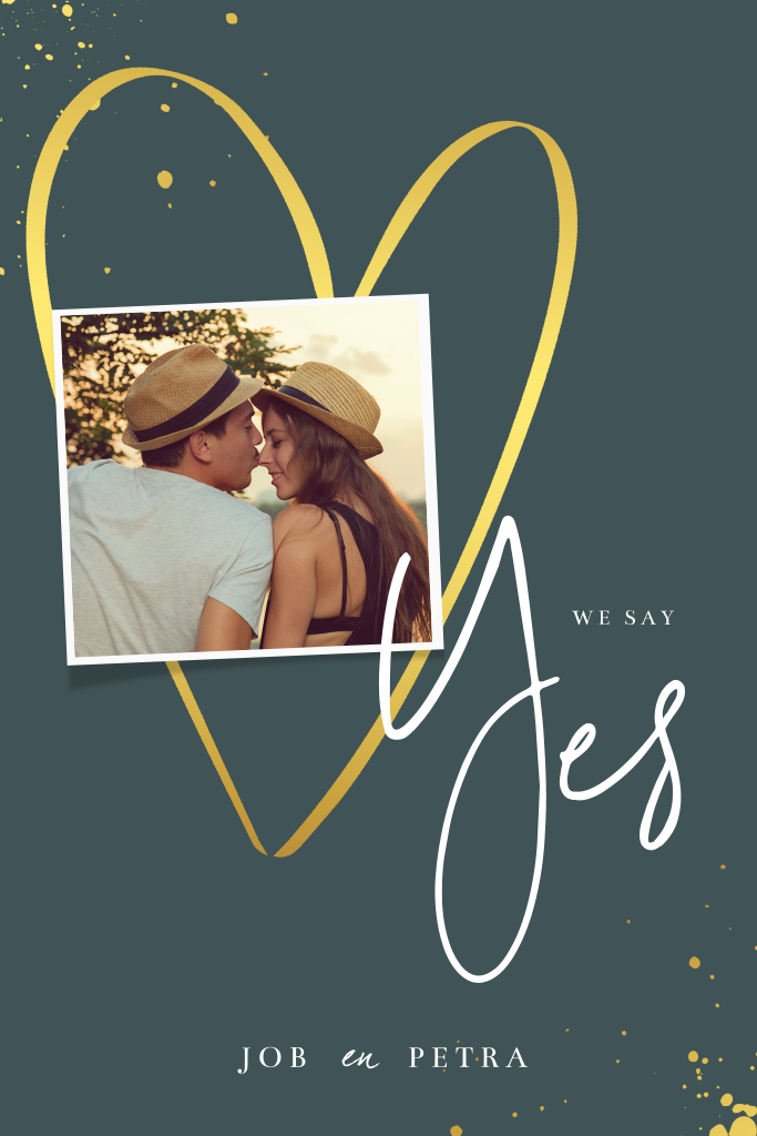 We say Yes! Kondig jullie huwelijk aan met deze hippe trouwkaart met eigen foto.
