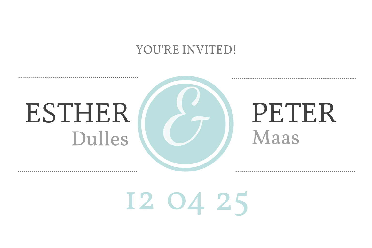 Een moderne huwelijksuitnodiging waarbij het en-teken een mooie plek heeft binnen het ontwerp. Kies een kleur die bij de dresscode en maak de kaart compleet. Bestel eenvoudig een proefdruk.