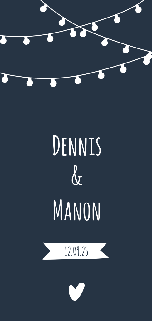 Trouwkaart met lampjesstring op een blauwe achtergrond