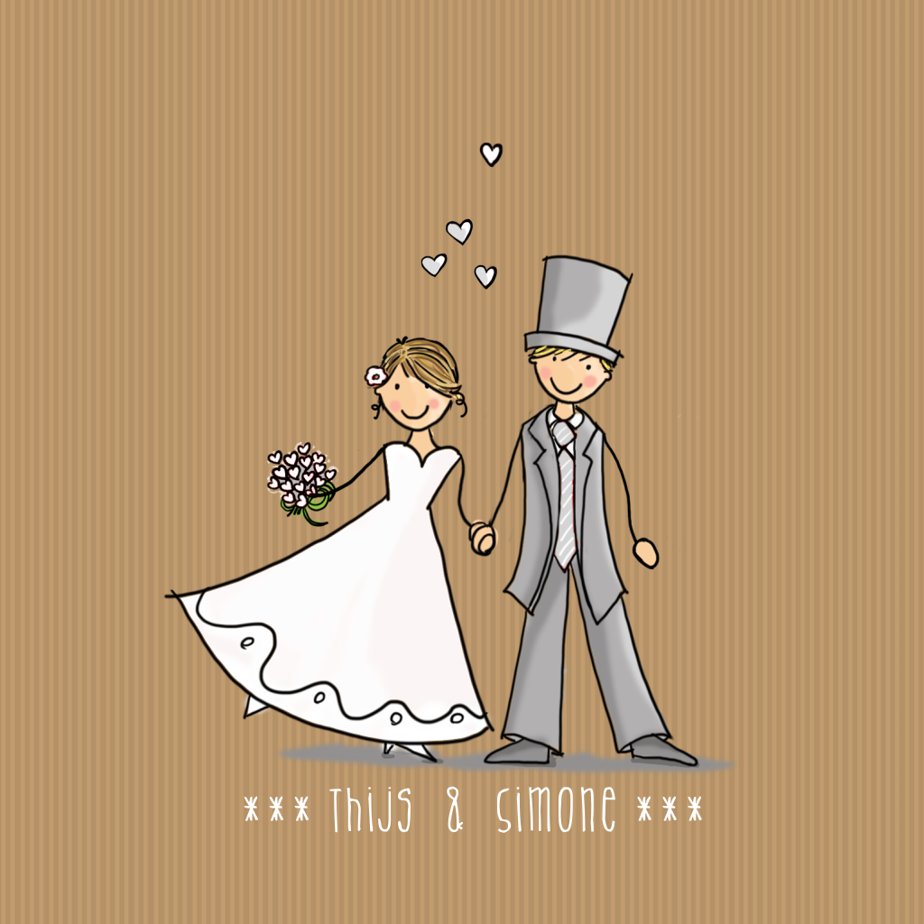 Vrolijke trouwkaart met de illustratie van een stel op kraftlook