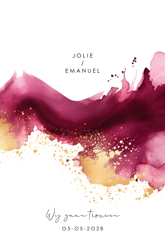 Stijlvolle trouwkaart met donkerrode aquarel en goudfolie
