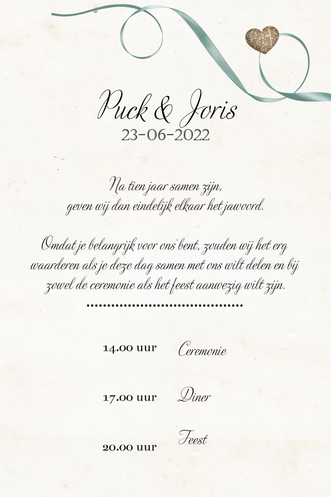 Originele huwelijksuitnodiging met foto, slinger Yes we do en lieve hartjes. Plaats jullie foto, wijzig de tekst en maak een proefdruk.