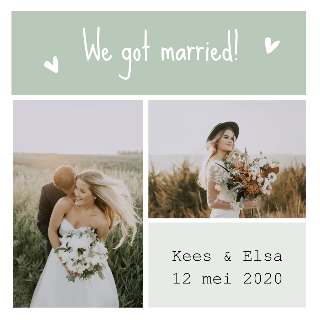 Plaats je trouwfoto's op de kaart en laat je familie en vrienden zien hoe de trouwdag was met deze We zijn getrouwd kaart.