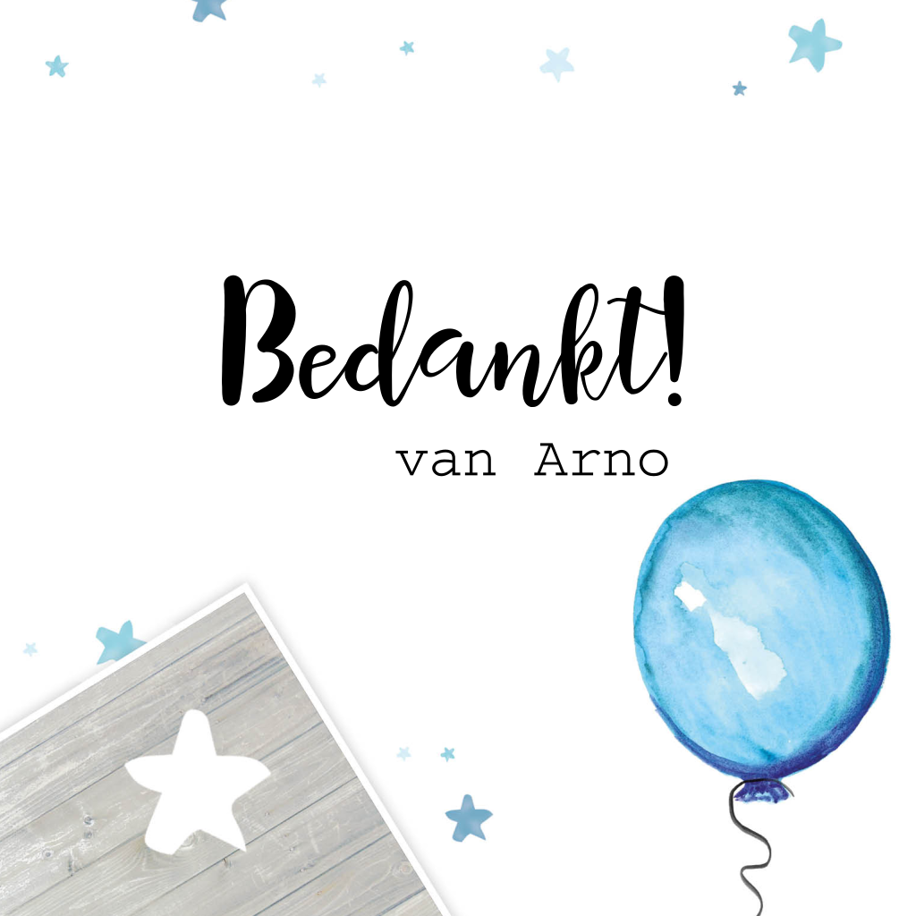 Vrolijke bedankkaart voor communie met ballon en sterren.