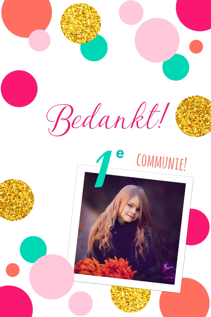 Deze kaart is perfect om jullie gasten te bedanken. Voeg een foto en de tekst toe. De goudkleurige confetti geeft deze bedankkaart een feestelijke uitstraling.