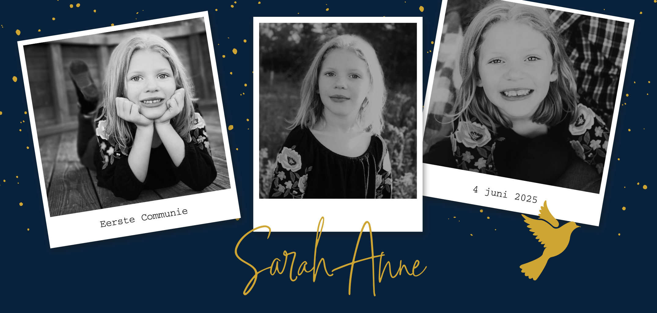 Panorama communiekaart met polaroid en donkerblauwe achtergrond
