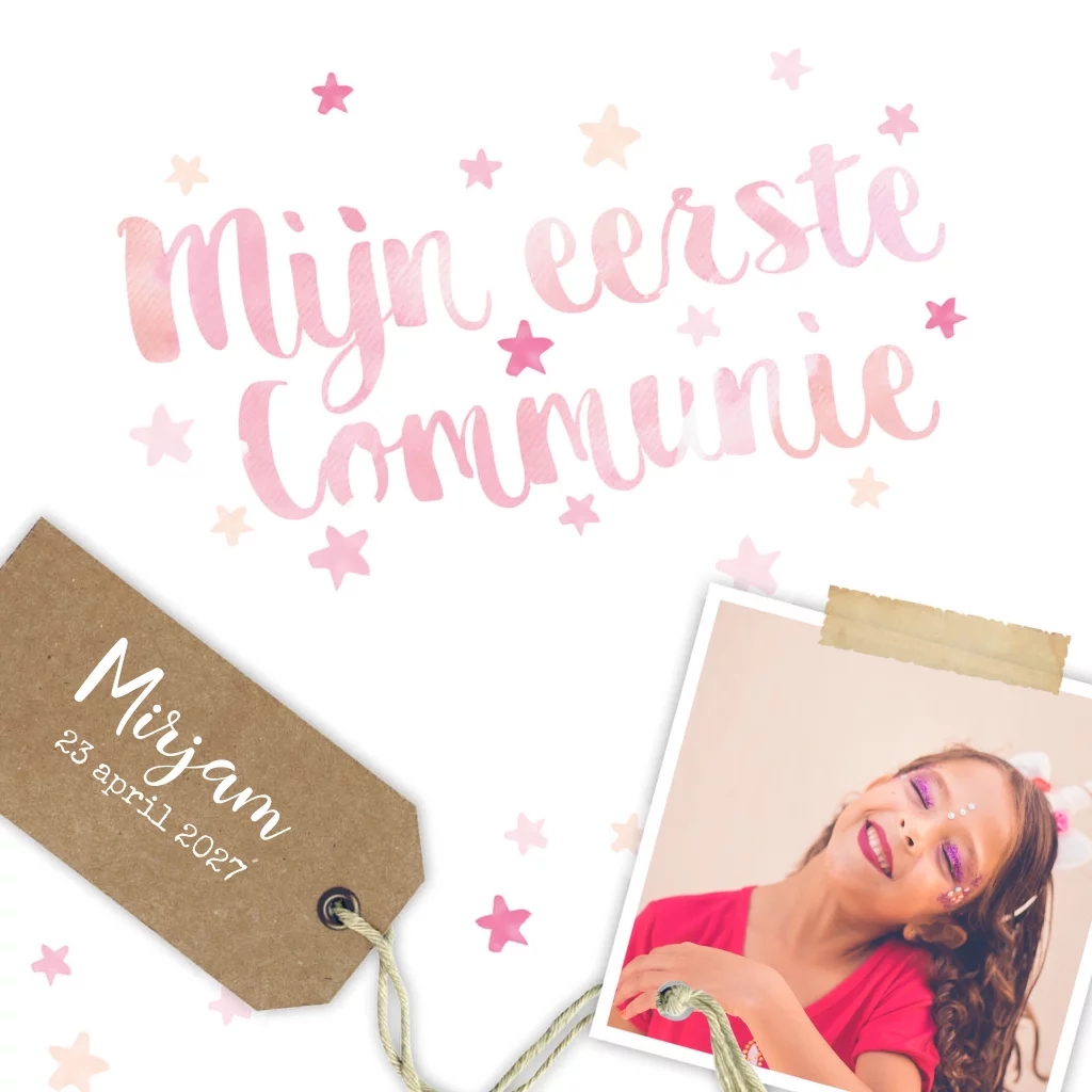 Lief communiekaartje met een foto en sterretjes