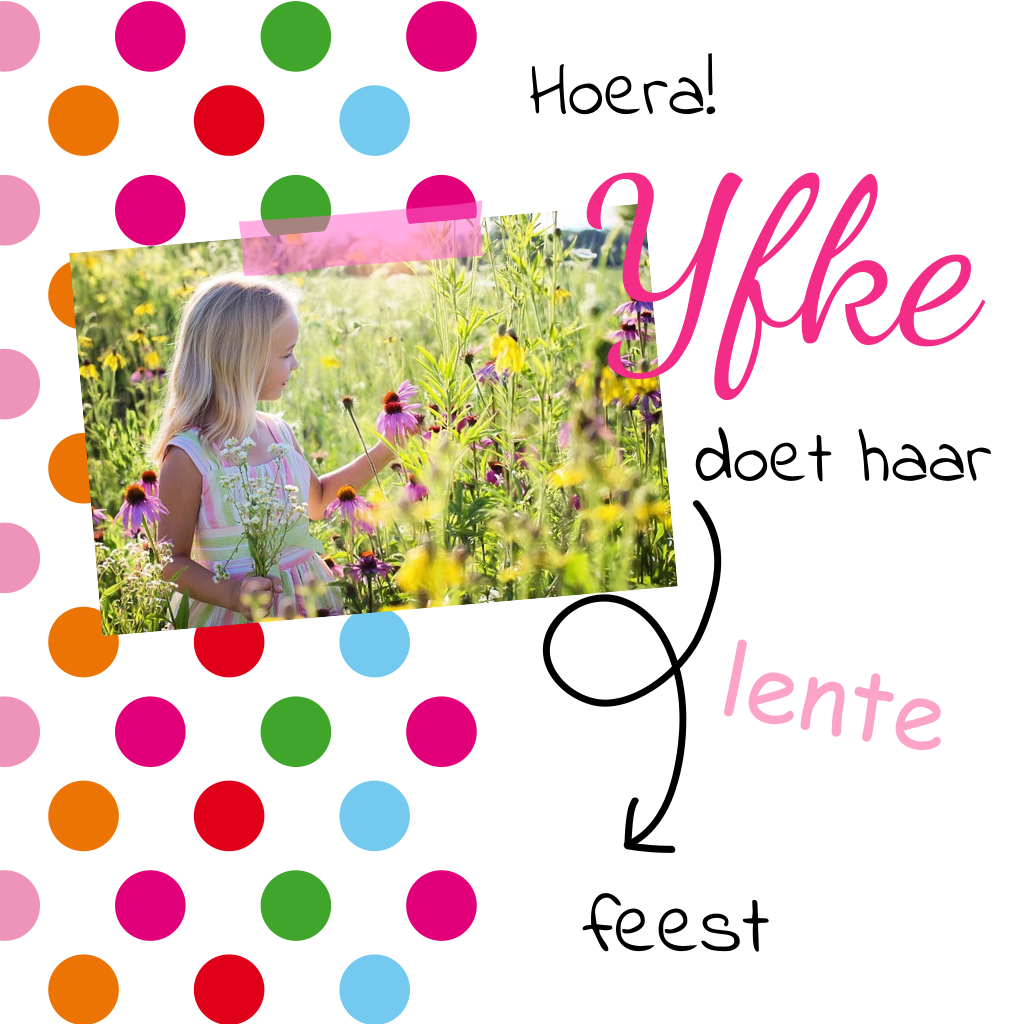 Uitnodigingskaart voor een lentefeest met stippen en foto