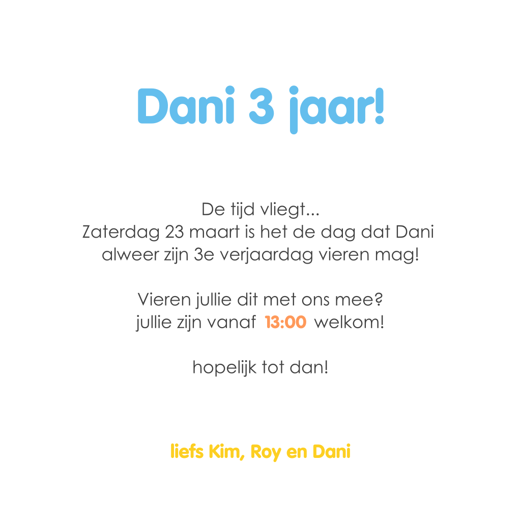 Vrolijke en stoere uitnodiging voor een jongen met een aapje, een boom en ballonnen. Plaats je eigen foto in de binnenkant van het kaartje.