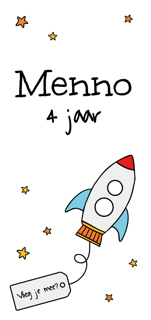 Heb jij een feestje met het thema 'Ruimte'? Dan past deze uitnodiging er perfect bij! Pas de leeftijd aan en schrijf je eigen teksten.