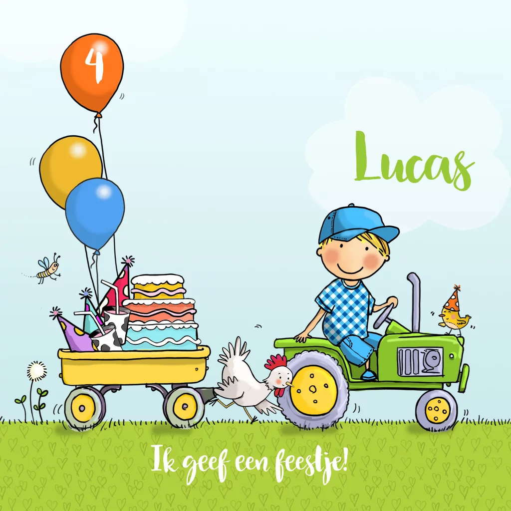 Uitnodiging voor een kinderfeestje met tractor - jongen