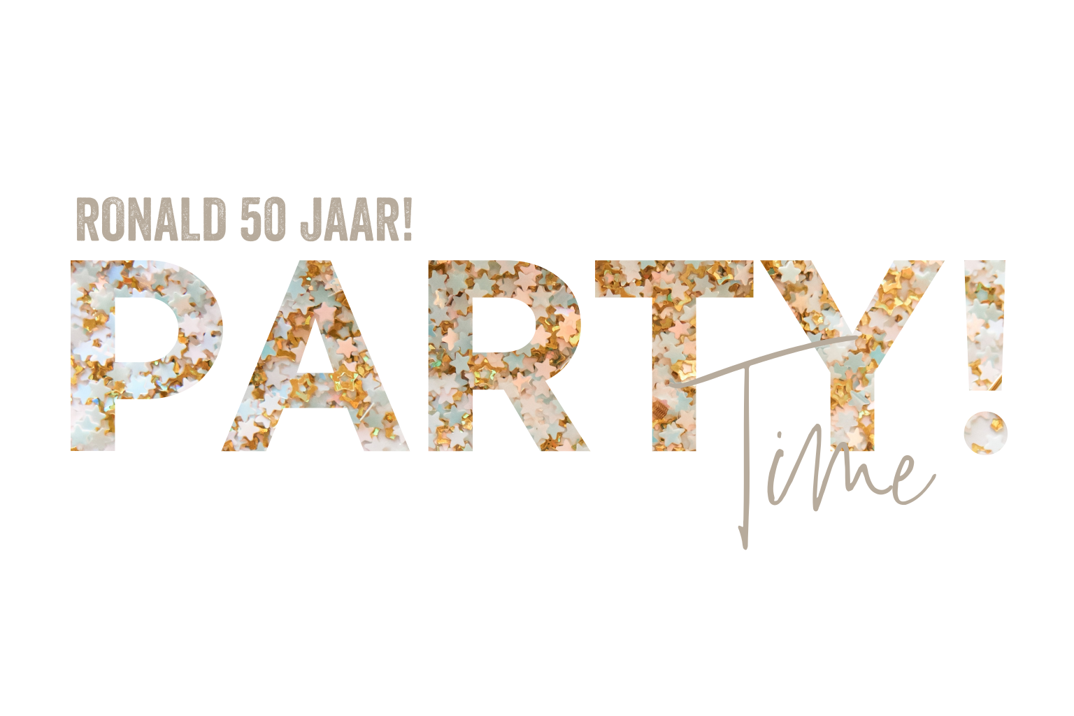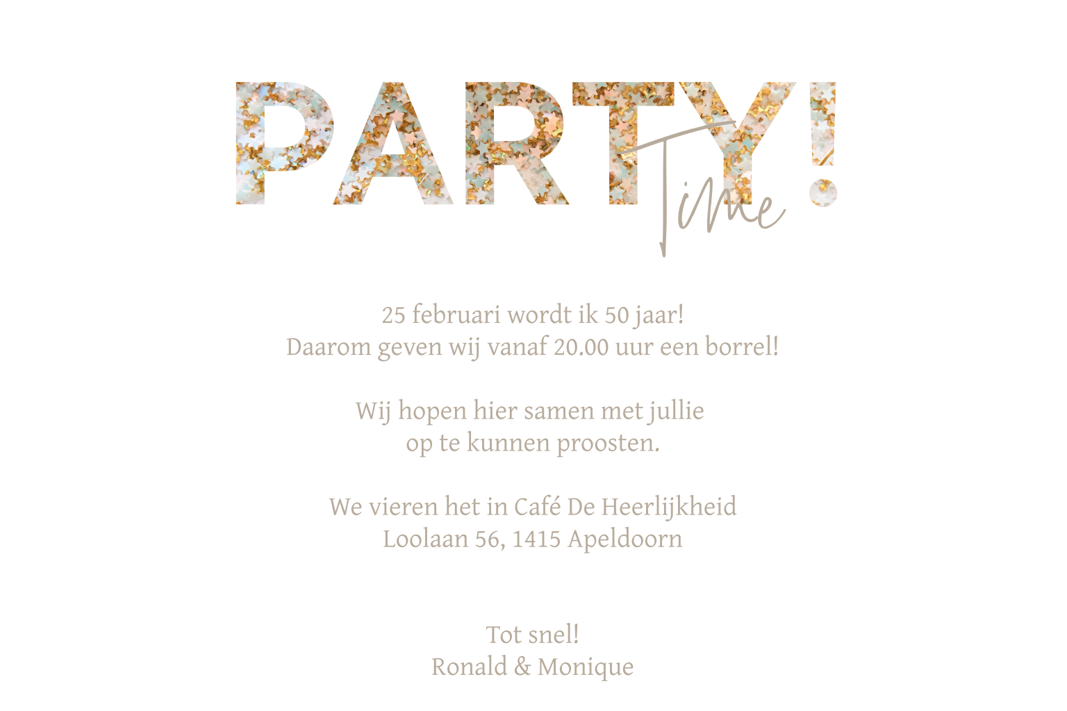 Vrolijke kaart met foto aan binnenzijde voor je 50e verjaardag. Dat is een feestje met een mooie uitnodiging waard.