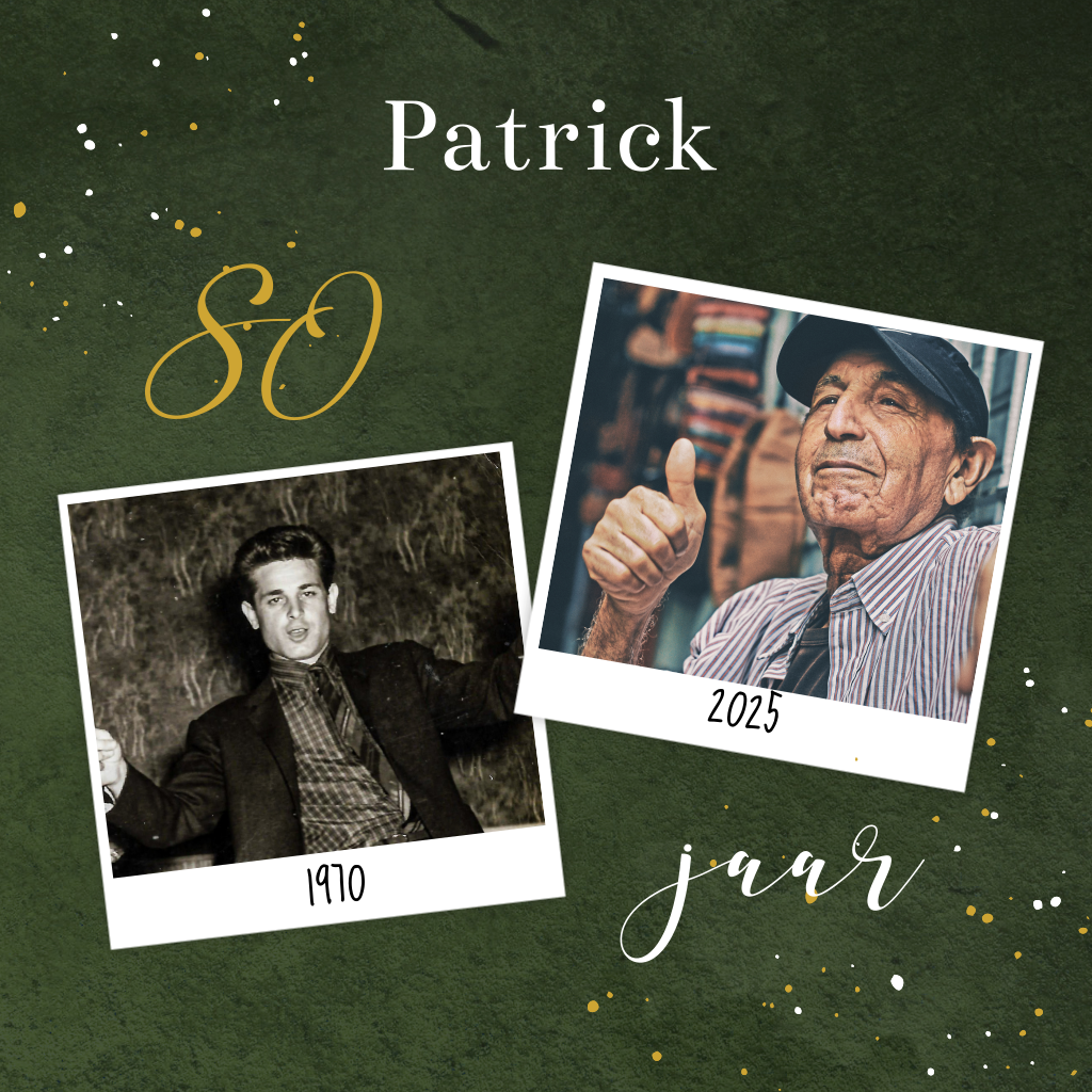 Mooie, groene uitnodiging voor verjaardag met chique uitstraling. De foto's kunnen in de online editor worden bewerkt.