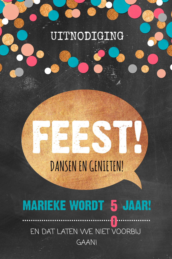 Hippe uitnodiging verjaardag 50 jaar met confetti op krijtbord
