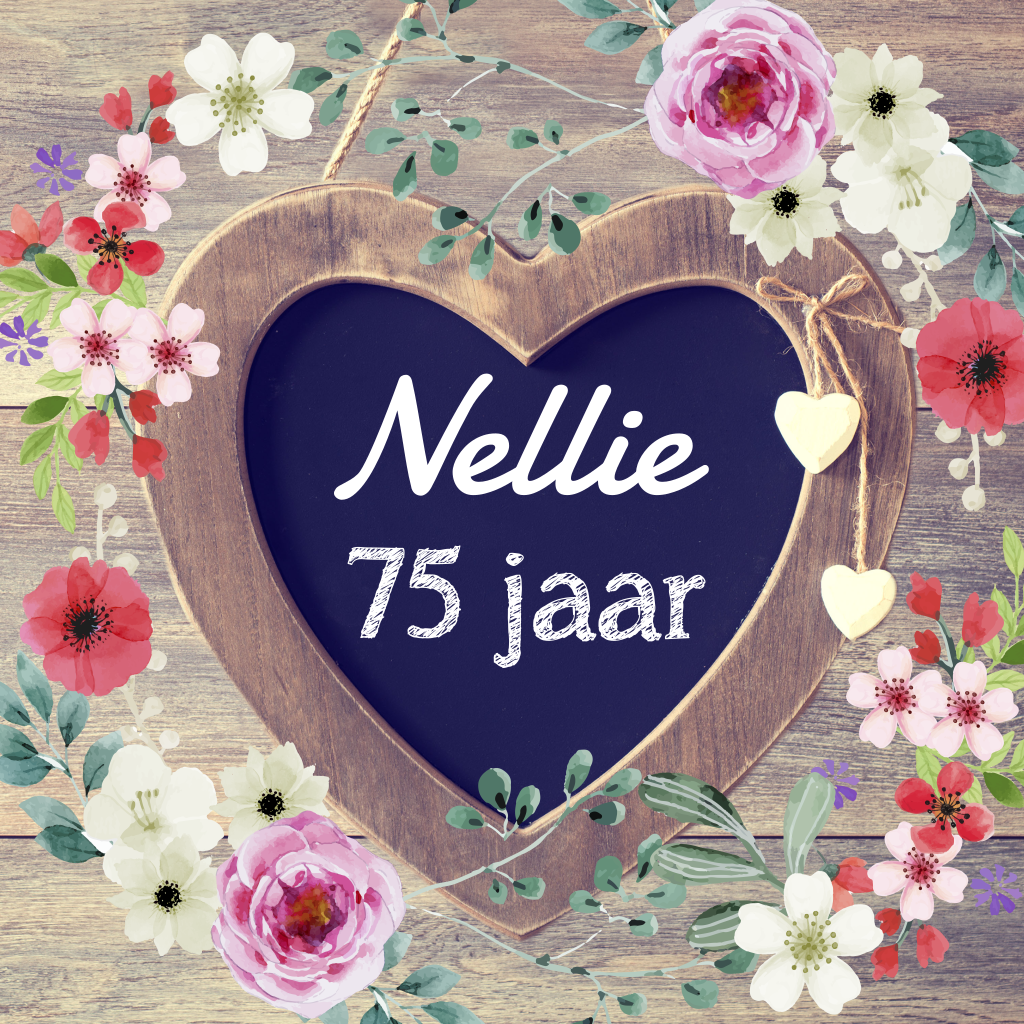 Verjaardaguitnodiging 75 jaar | Hart met bloemen
