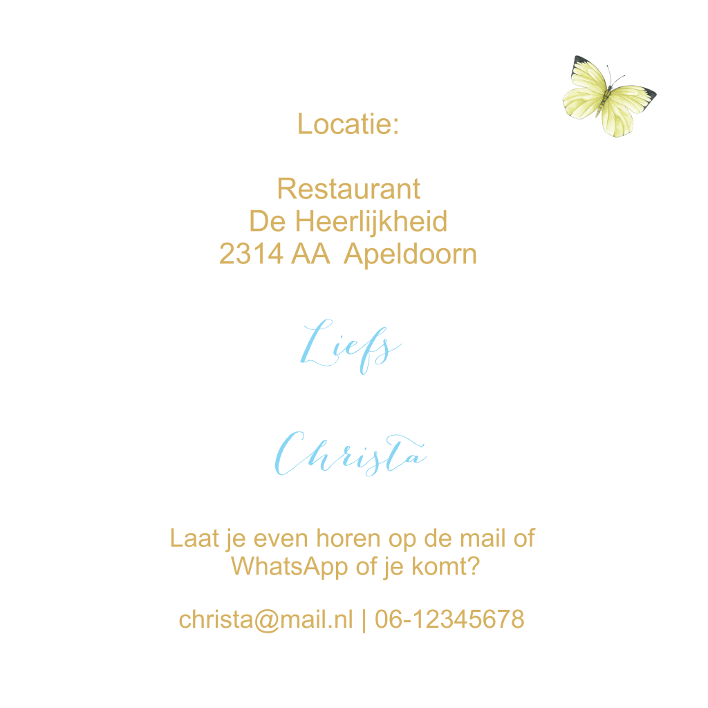 Mooie uitnodiging voor 80e verjaardag. Wat een prachtige leeftijd! De margrietjes en vlinders maken het een vrolijk geheel. Pas teksten en kleuren zelf aan.