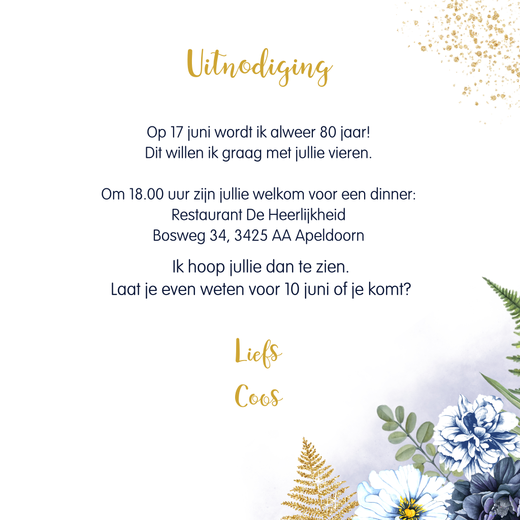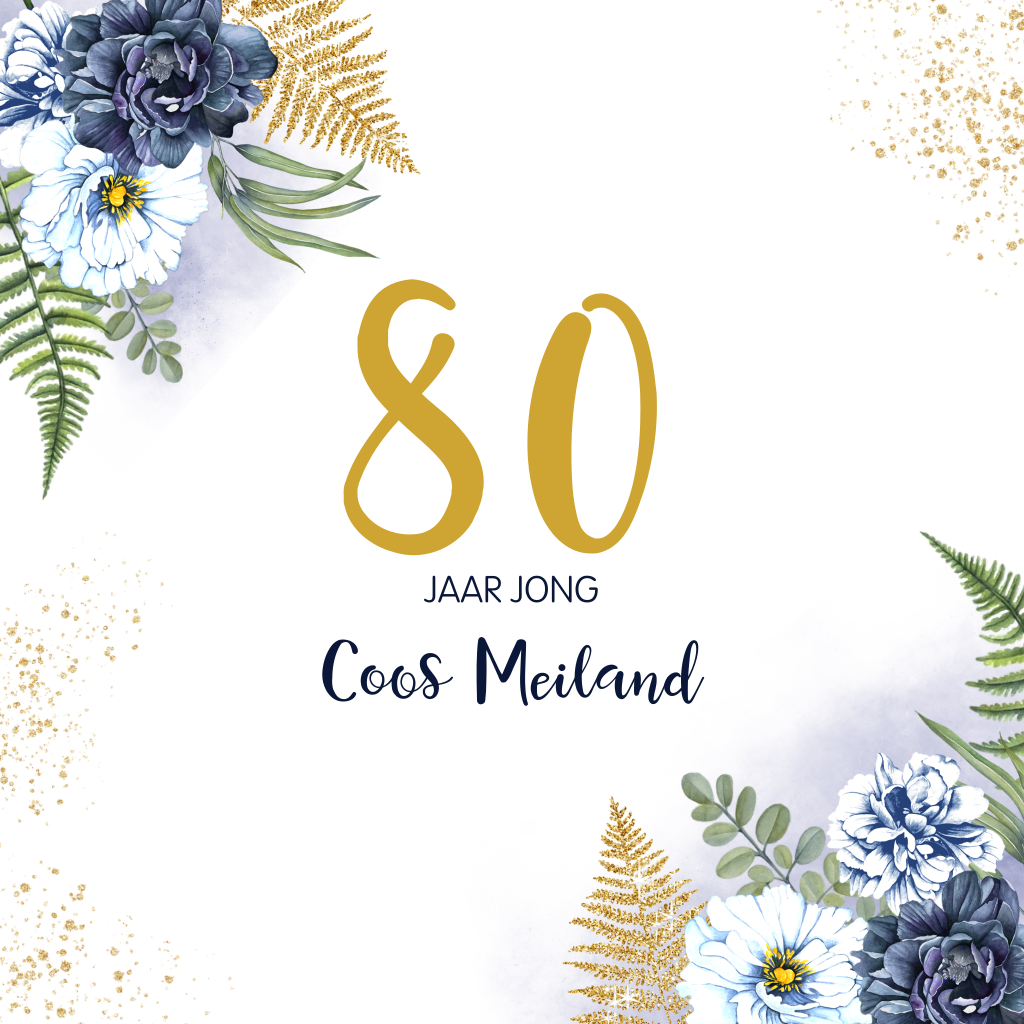 Elegante uitnodiging 80 jaar met bloemen