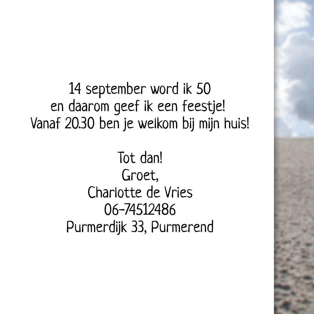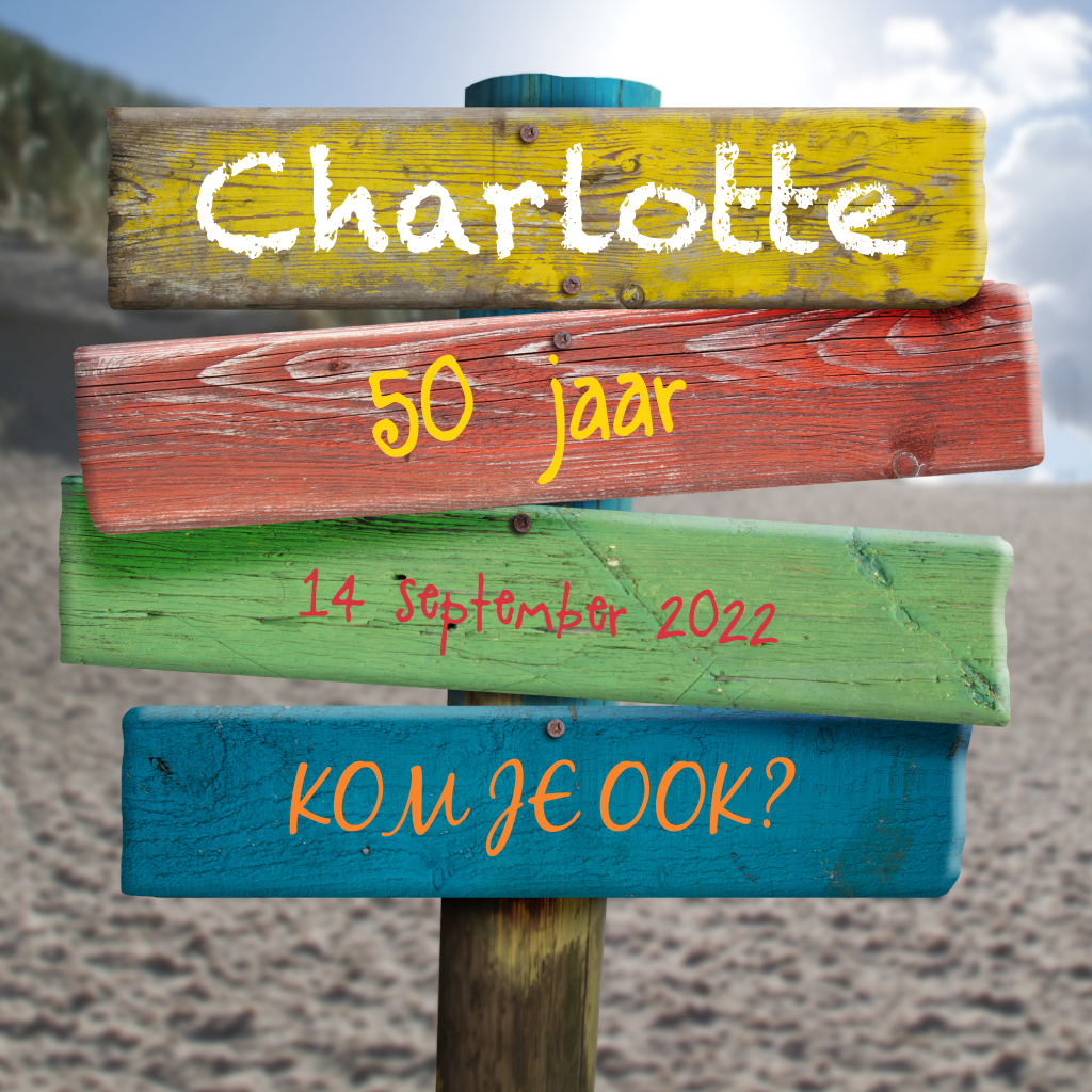 Stoere uitnodiging 50 jaar met gekleurde strandpaal