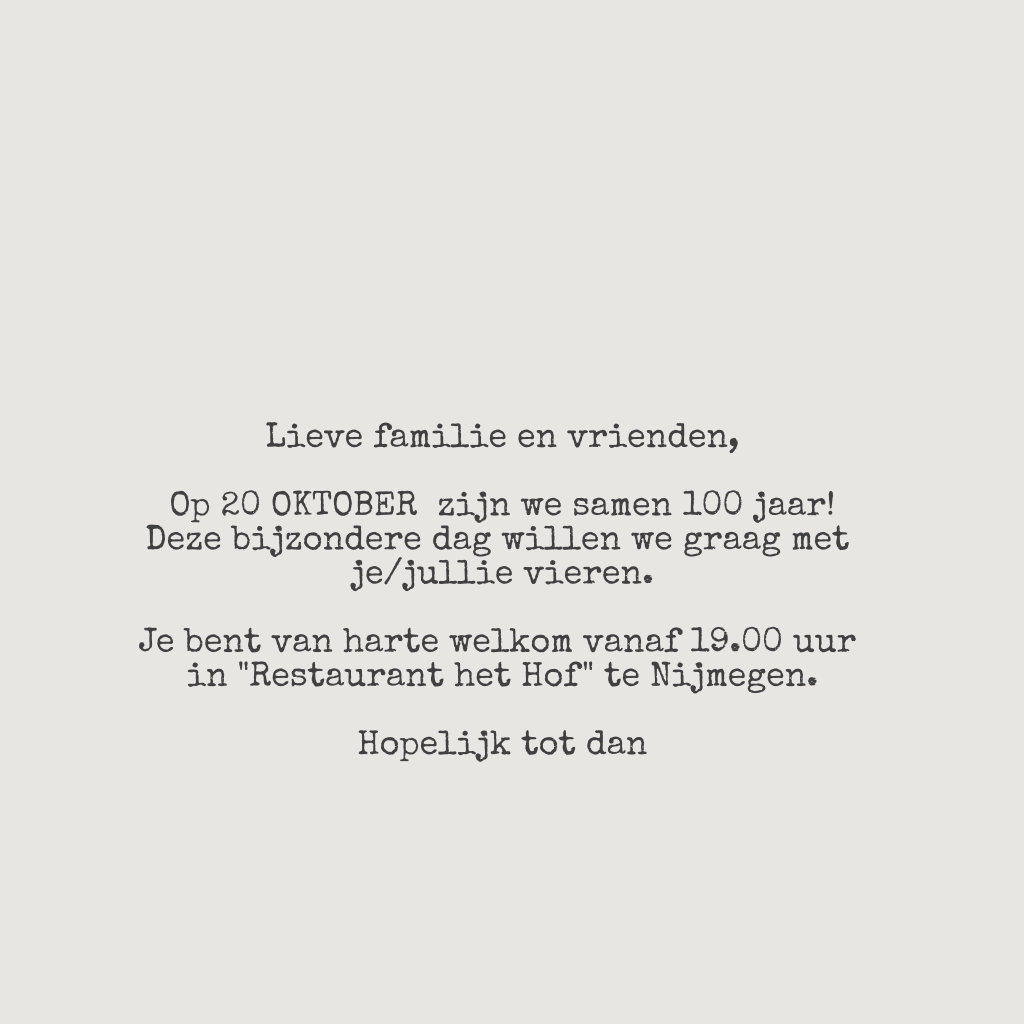 Uitnodigingskaart samen 100 jaar met strandpaal