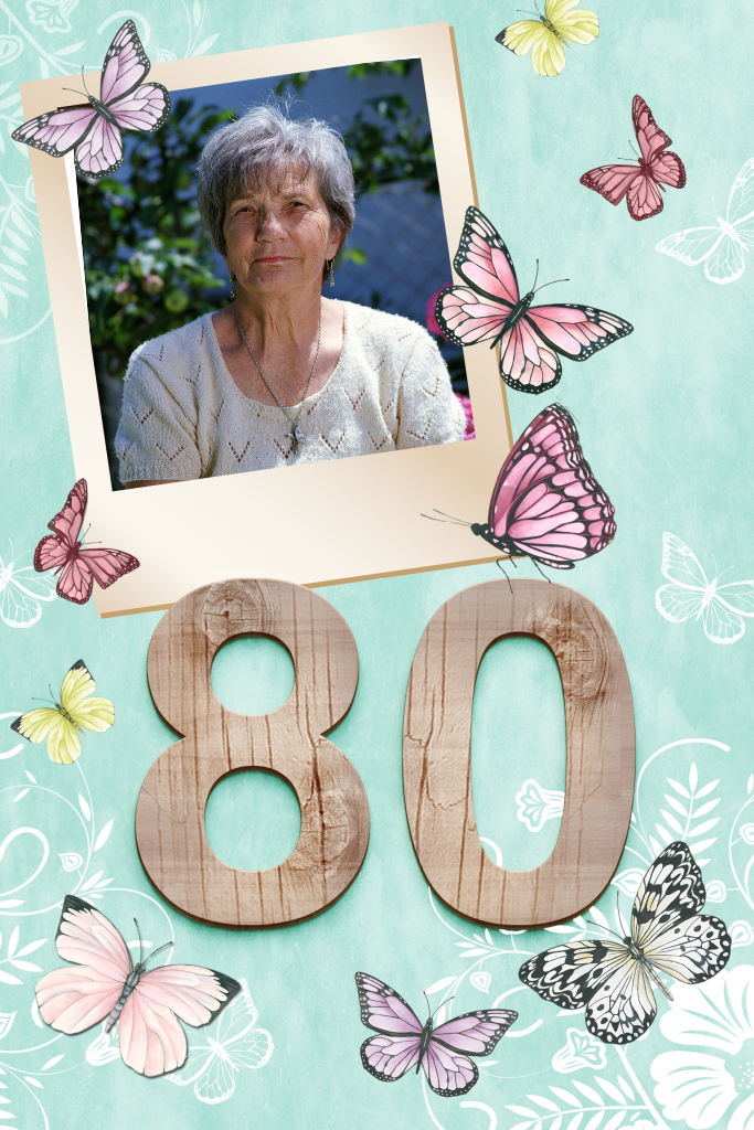 Mooie uitnodiging voor een 80'ste verjaardag met foto en vlinders