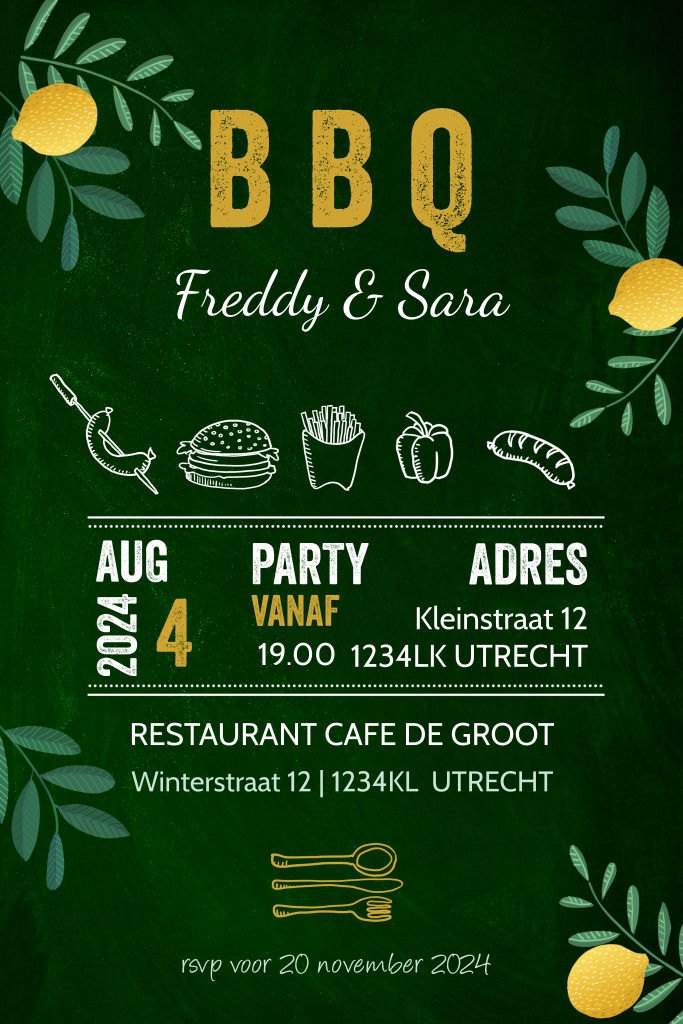 Uitnodiging barbecue met citroenen en takjes