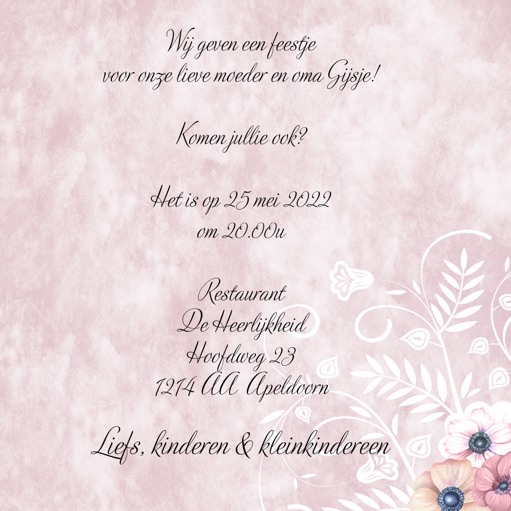 Uitnodigingskaart 80 jaar met houten cijfers en vlinders