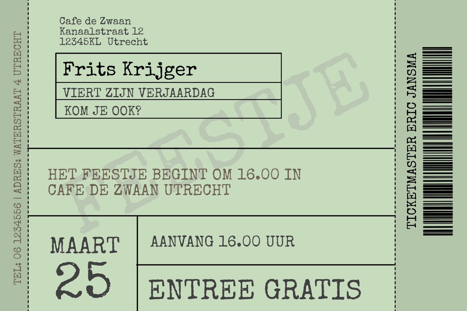 Originele uitnodigingskaart in een vorm van een ticket