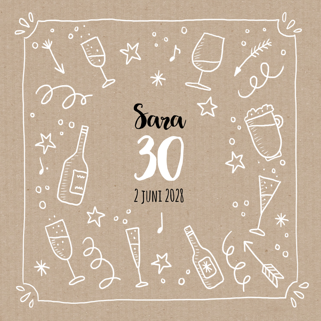 Hippe verjaardagsuitnodiging 25 jaar vrouw met illustraties op kraft
