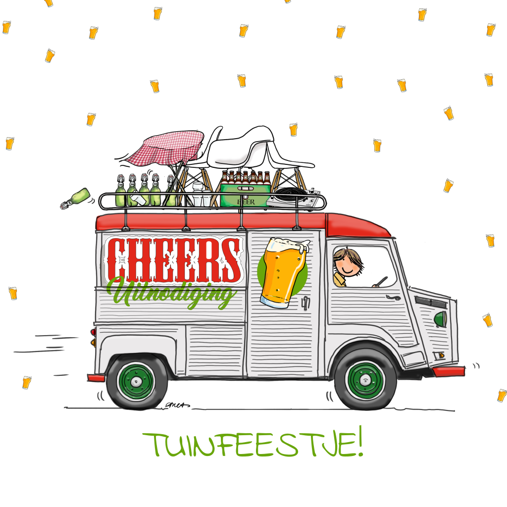 Vrolijke verjaardagsuitnodiging met vrachtwagen met bier