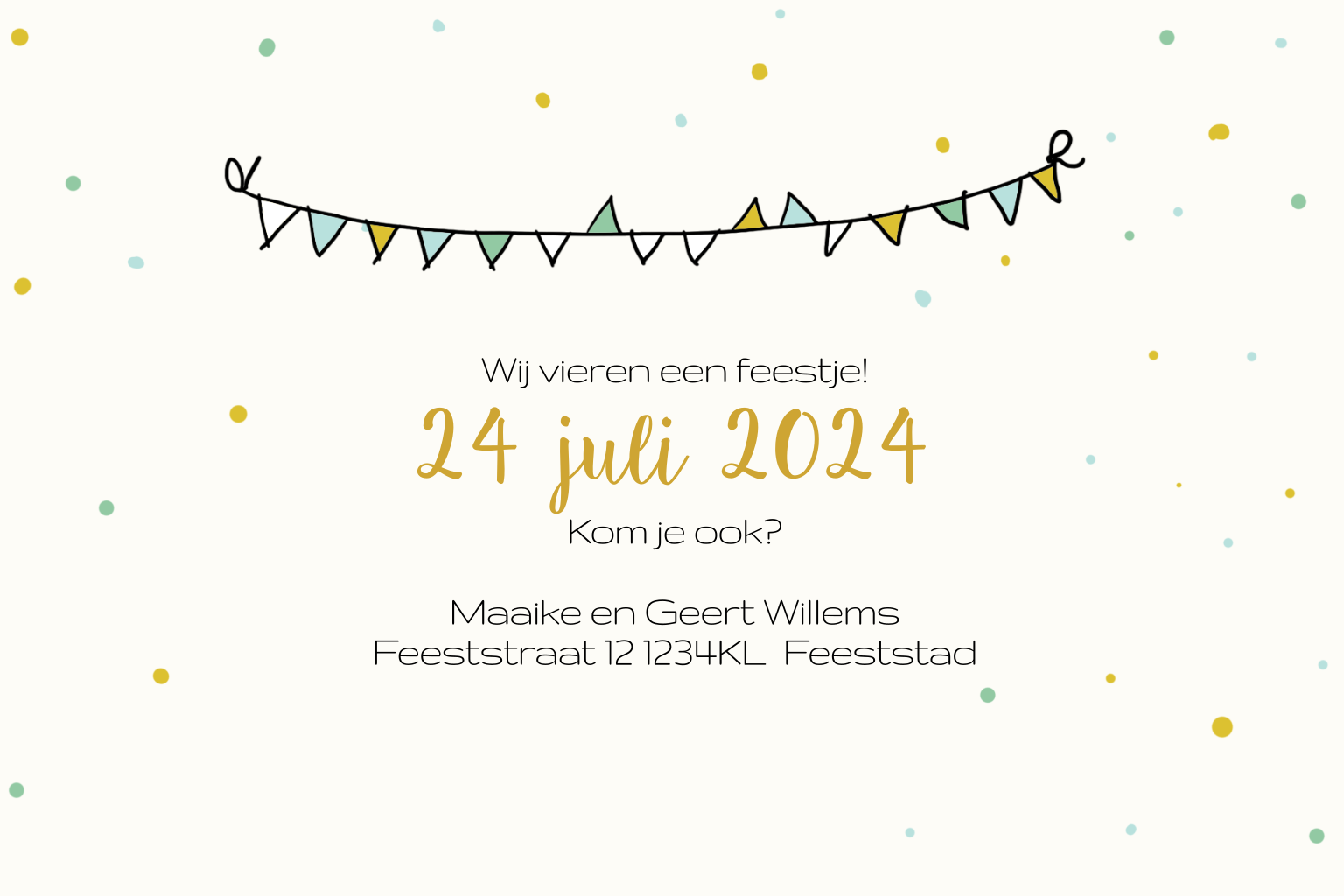 Vrolijke verjaardagsuitnodiging met tekening van caravan en slingers