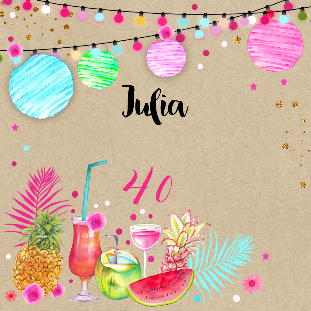 Tropische uitnodiging 40e verjaardag vrouw met lampionnen en drankjes