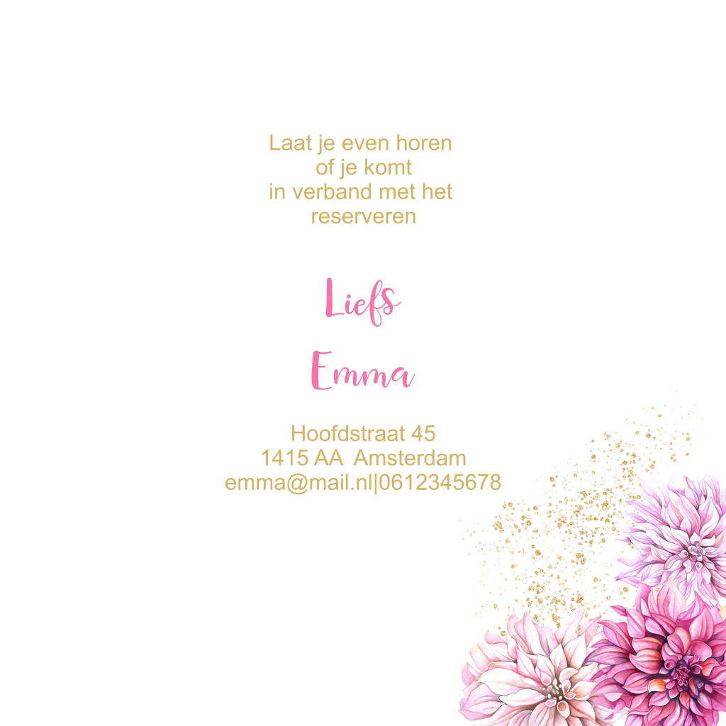 Stijlvolle uitnodiging 60e verjaardag vrouw met foto en dahlia bloemen