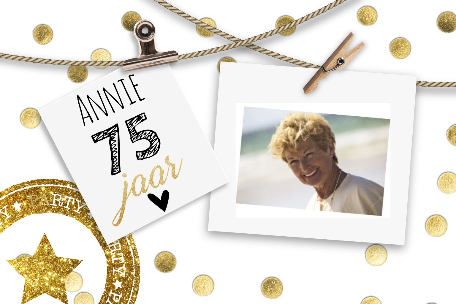 Vrolijke uitnodiging met confetti voor 75 jaar verjaardag
