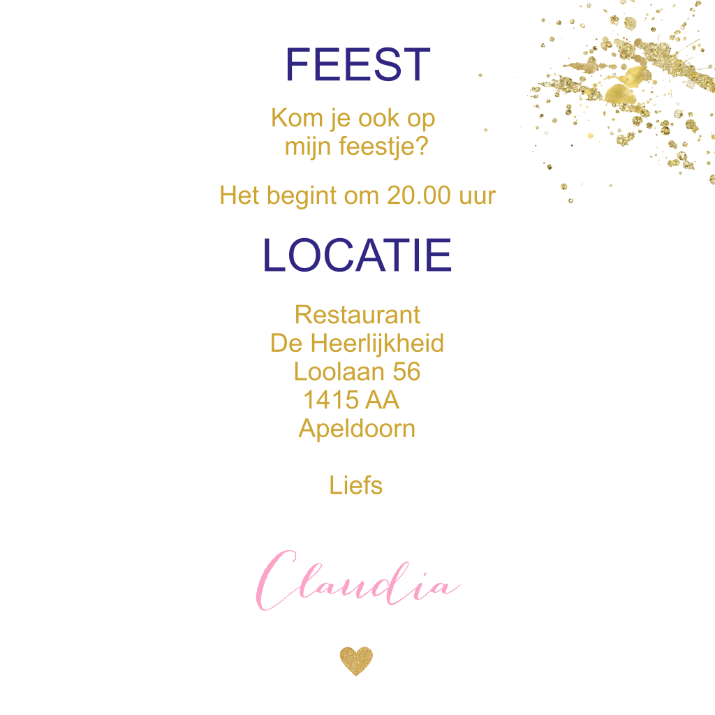 Sfeervolle uitnodiging voor 50e verjaardag. Met lotusbloemen en gouden spetters. Pas tekst en afbeeldingen zelf aan en maak zo een uniek kaartje!