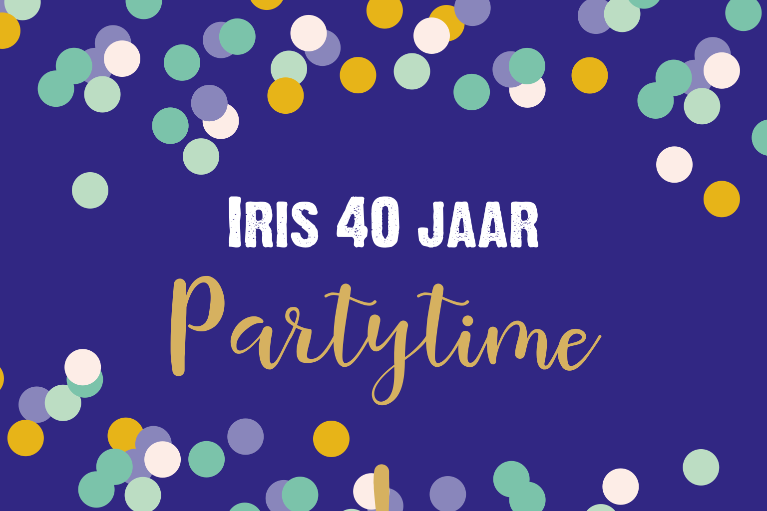 Hippe uitnodiging met confetti in groen, oker en paars. Pas eventueel zelf de achtergrondkleuren aan.