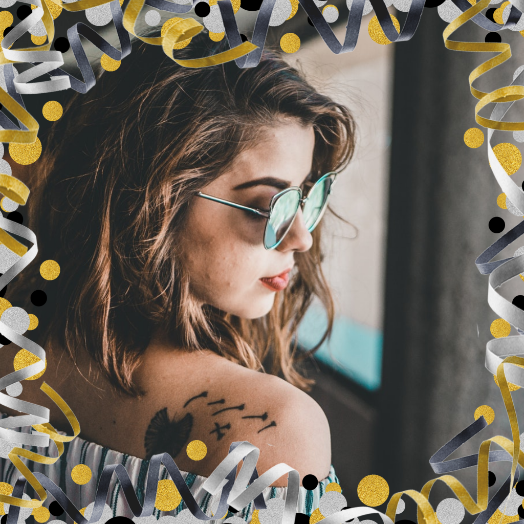 Hip uitnodigingskaartje met slinger- en confettiframe om foto. Wanneer is jouw feestje?