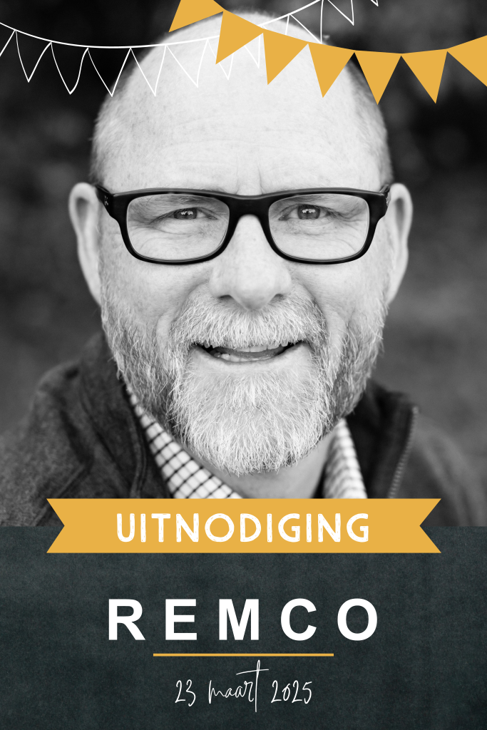 Maak je eigen persoonlijke verjaardagsuitnodiging met een foto van de jarige. De slinger en banner in okergeel maken de kaart extra feestelijk. De teksten en kleuren van de kaart pas je eenvoudig aan in de online editor.