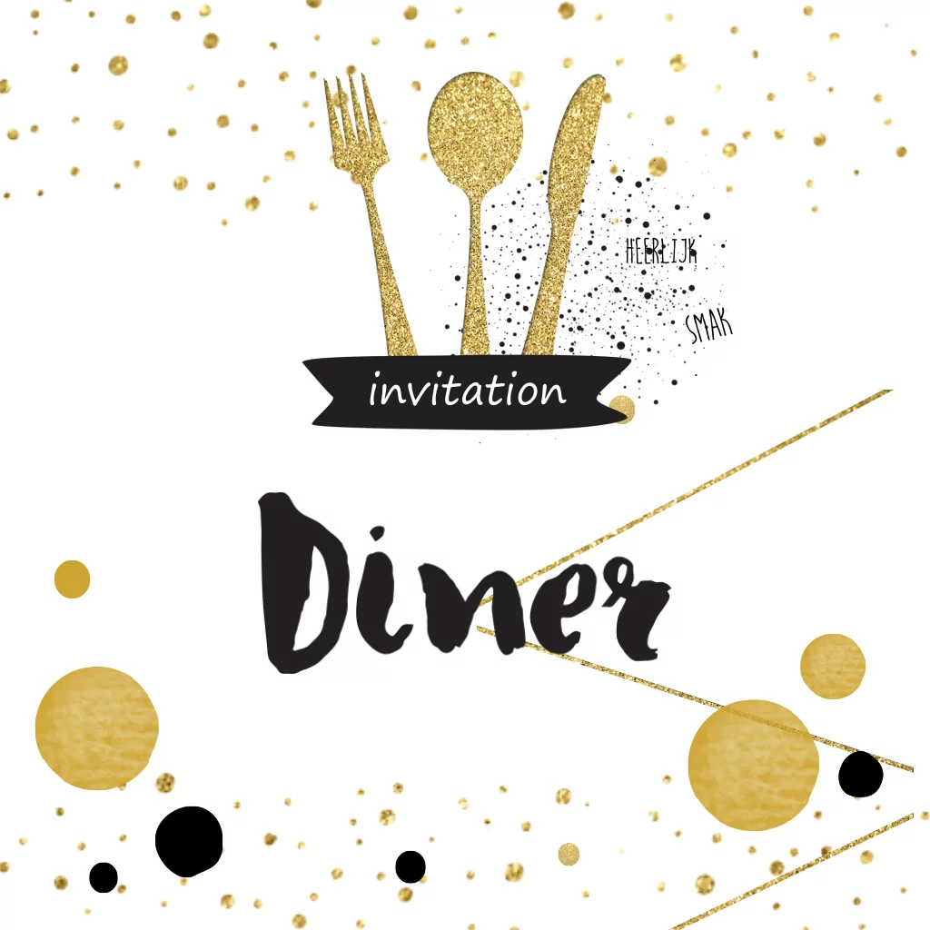 Uitnodiging voor een dinner. Geef jij een dinner voor je verjaardag of je jubileum? Pas de teksten op deze vrolijke uitnodiging aan en maak het persoonlijk.
