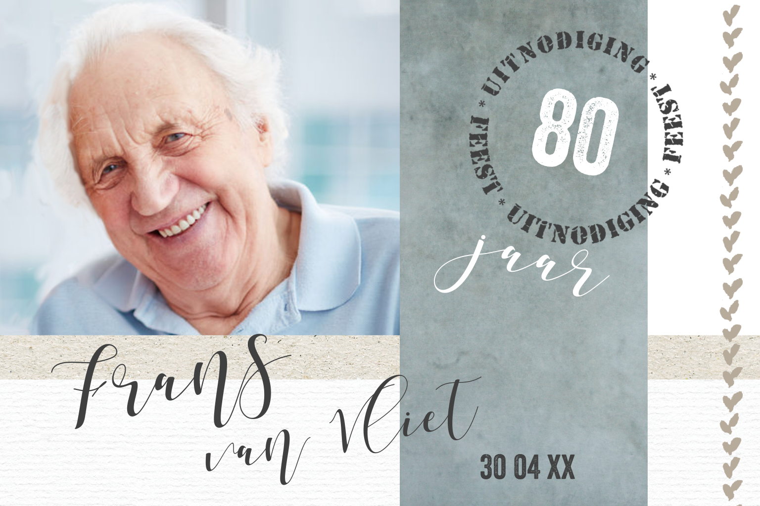 Verjaardag uitnodiging voor 80 jaar met foto en stempels