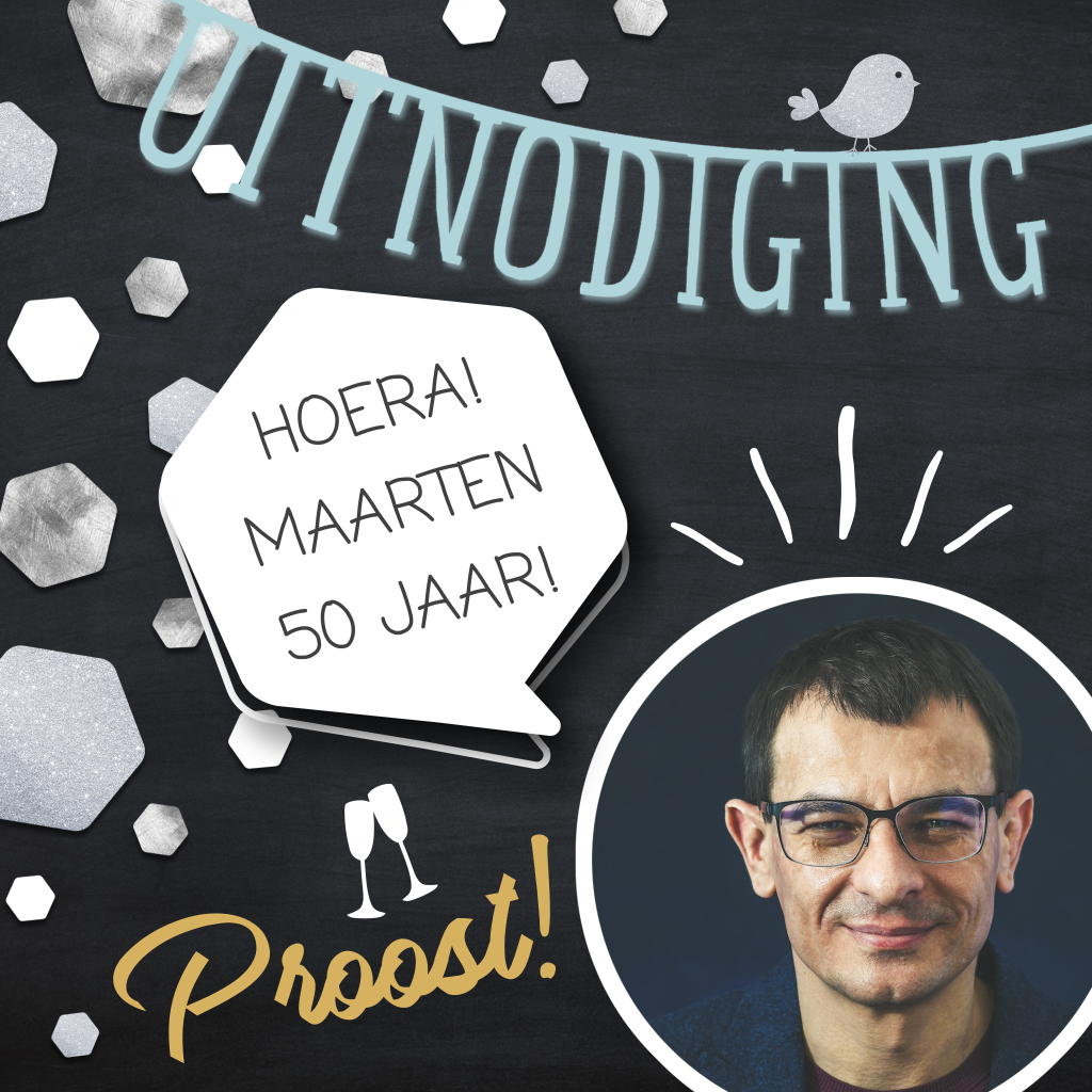Stoere uitnodiging verjaardag man met krijtbord en slinger