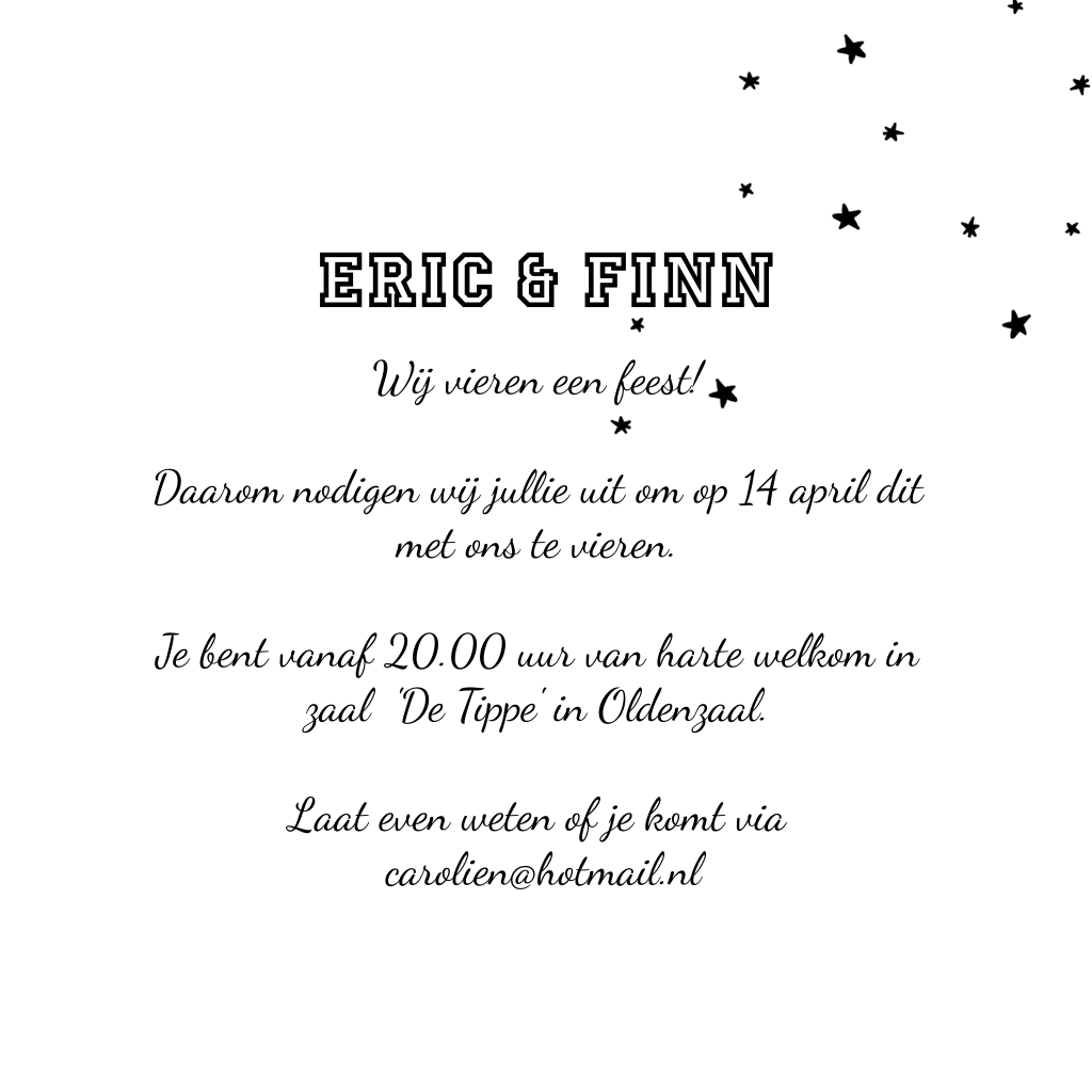Vrolijke uitnodigingskaart met een rood busje en zwarte sterren