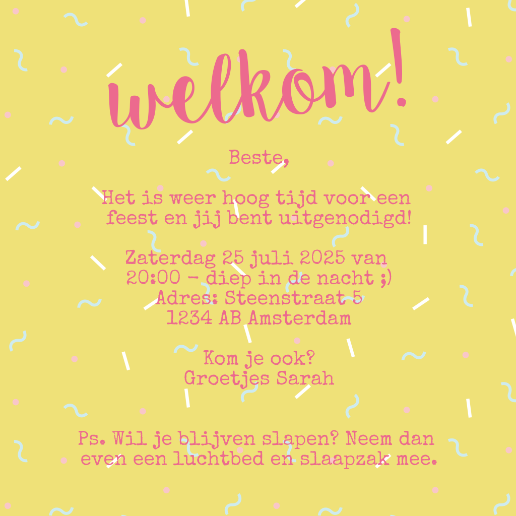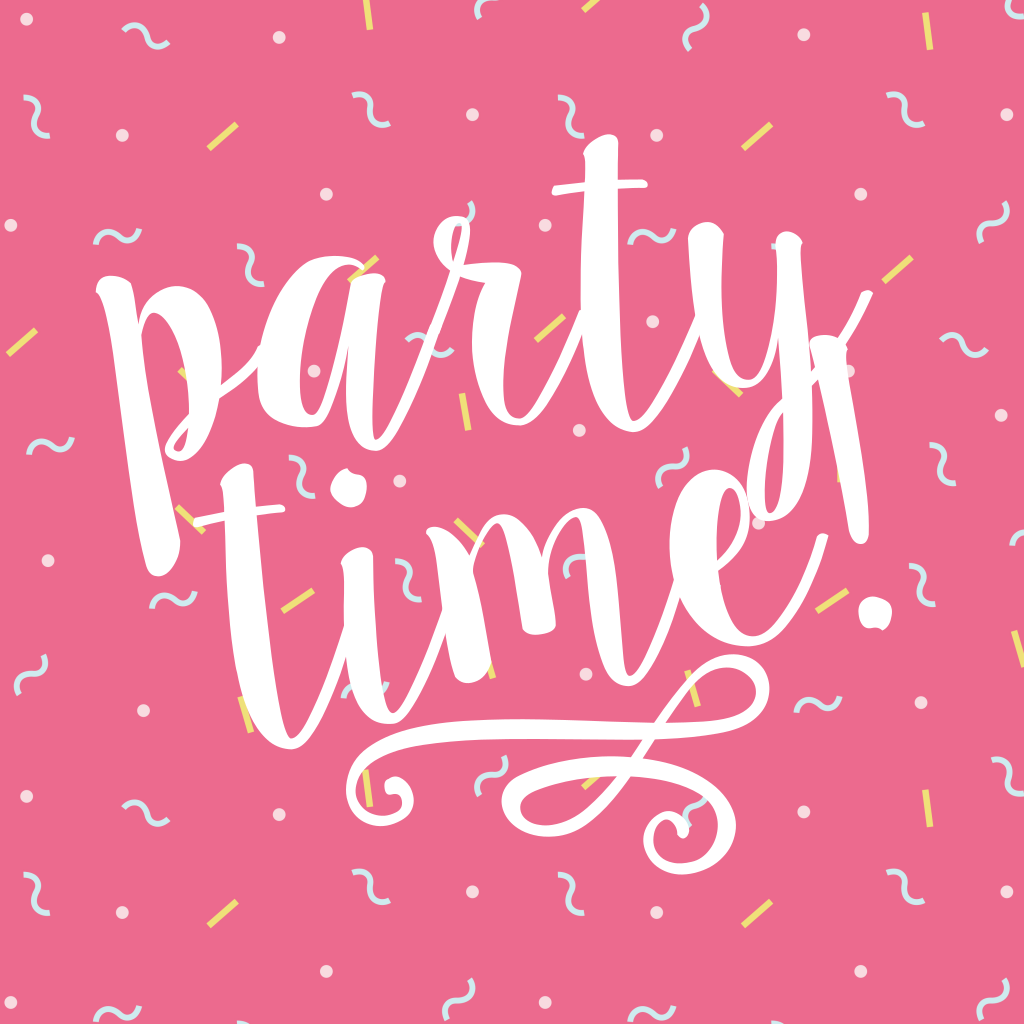 Verjaardagsuitnodiging met vrolijke tekst - Party Time