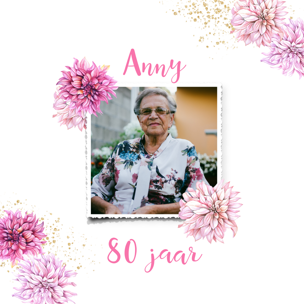Stijlvolle uitnodiging voor een prachtige leeftijd... 80 jaar! Je kunt zelf een foto uploaden, teksten wijzigen en kleuren aanpassen. Hulp nodig? Neem gerust contact op!
