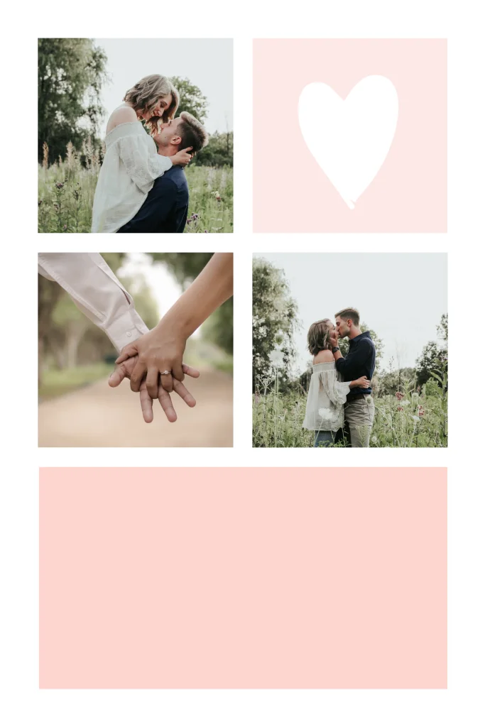 Uitnodiging met blokken en foto's. Vervang het hart door een ster of een ander figuur.