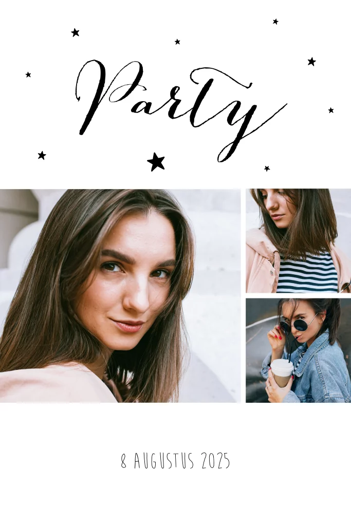 Maak je eigen fotocollage kaart. Door op de foto's te klikken kan je het vervangen met een eigen foto van je computer, tablet of mobiel.