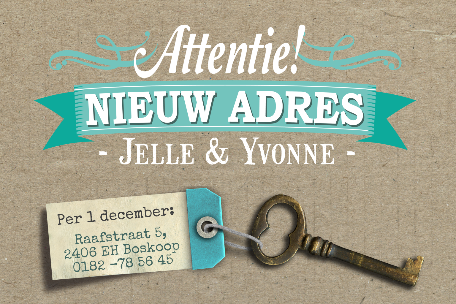Leuke verhuiskaart met sluitel en kraftlook achtergrond